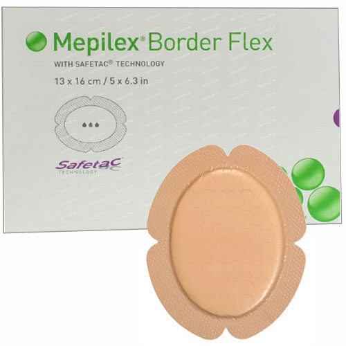 Product Detail : Mepilex Border Flex 5" x 6.3" (13 x 16 cm) Self-Adherent Absorbent Bordered Foam Dressing with Safetac technology.