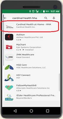 Select the App listed as “Cardinal Health at-Home – HHA” with the